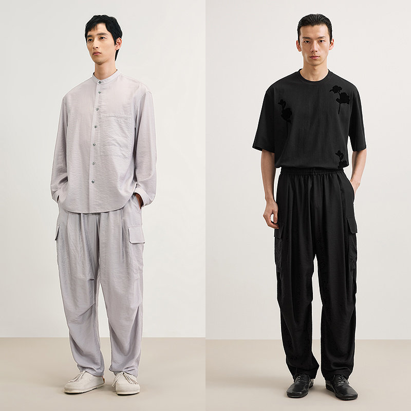 [莱赛尔]速写男装春夏新款男士伞兵裤双褶休闲裤宽松简约时尚