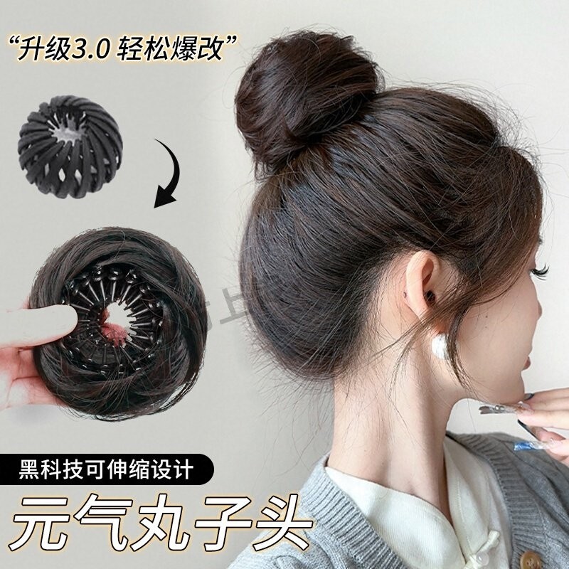 鸟巢丸子头假发发圈女伸缩抓夹花苞头盘发假发包蓬松仿真发侧丸子