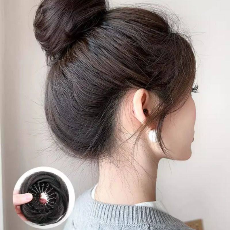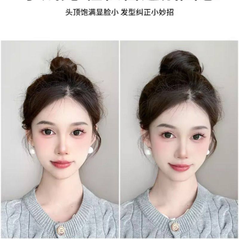 低扎丸子头假发鸡毛头抓夹盘发发包慵懒感造型头饰自然蓬松后脑勺