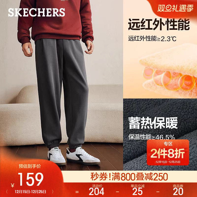 斯凯奇2025年新款舒适宽松男士长裤保暖束脚裤纯色运动裤百搭时尚