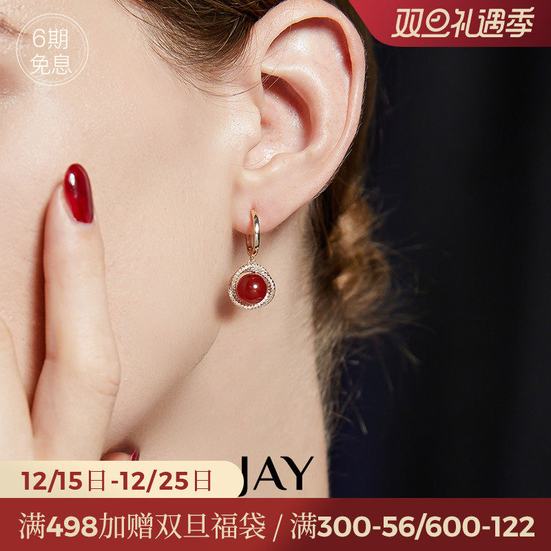 JAY复古红色耳环轻奢高级感耳饰女新款耳坠港风耳钉耳夹新年礼物