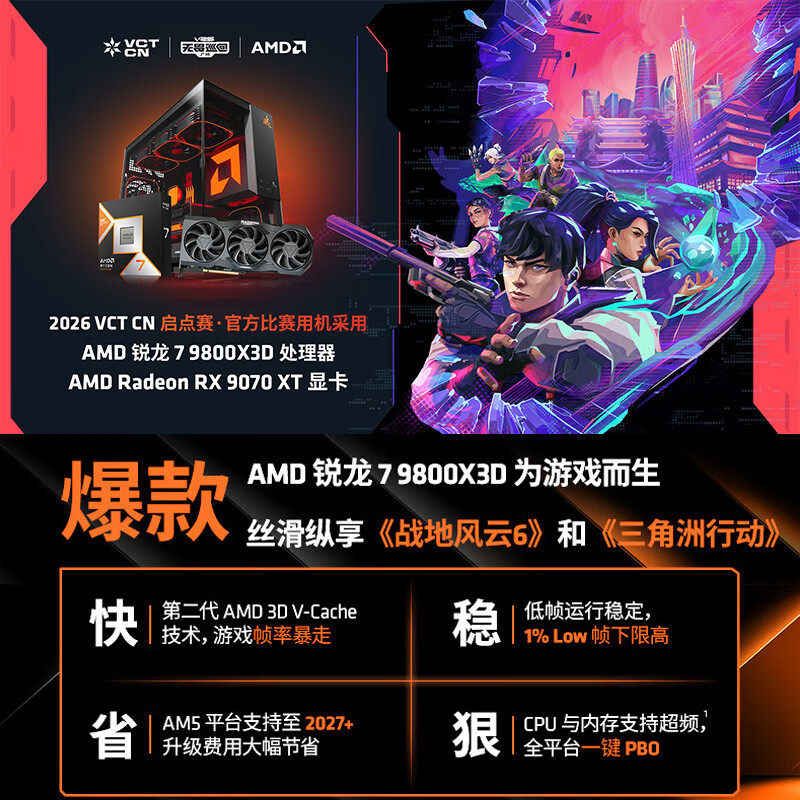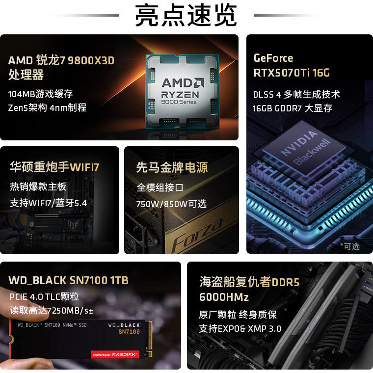 浪AMD锐龙7 7800X3D/9800X3D/9850X3D/RTX5070/5070Ti/5080/RX9070XT游戏diy整机电脑主机套件CSGO战地5060TI