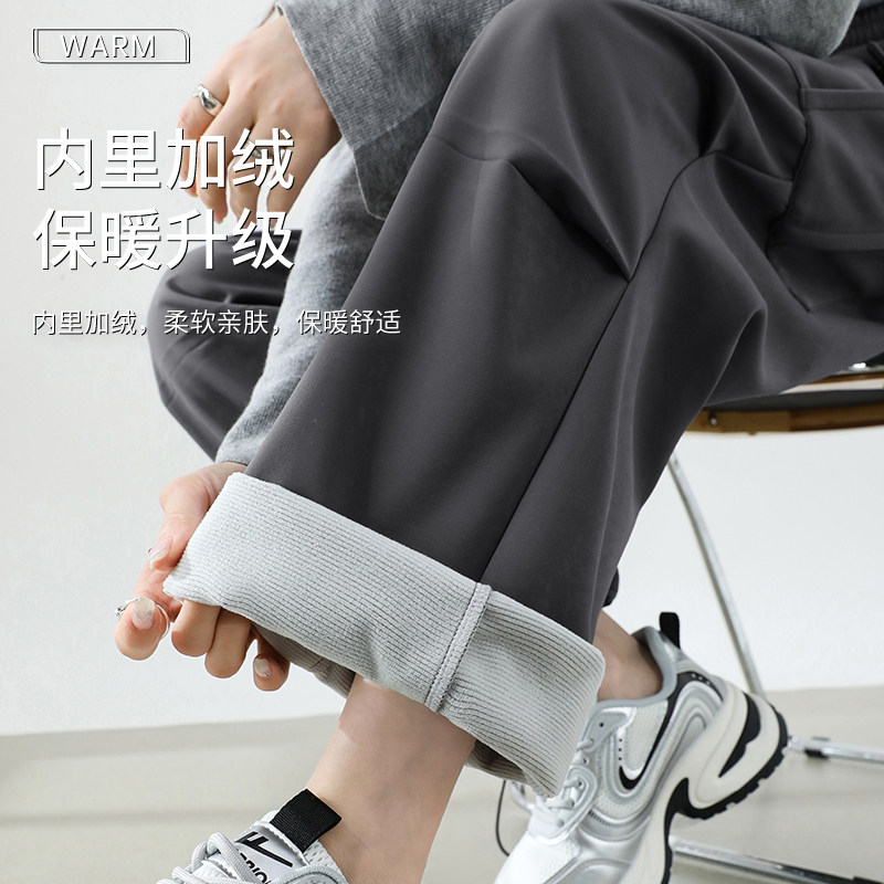 魔悦加绒糯米裤2025秋冬新款口袋显瘦休闲裤