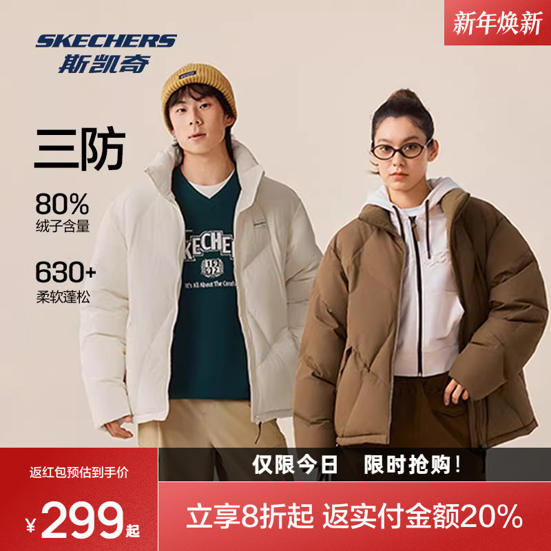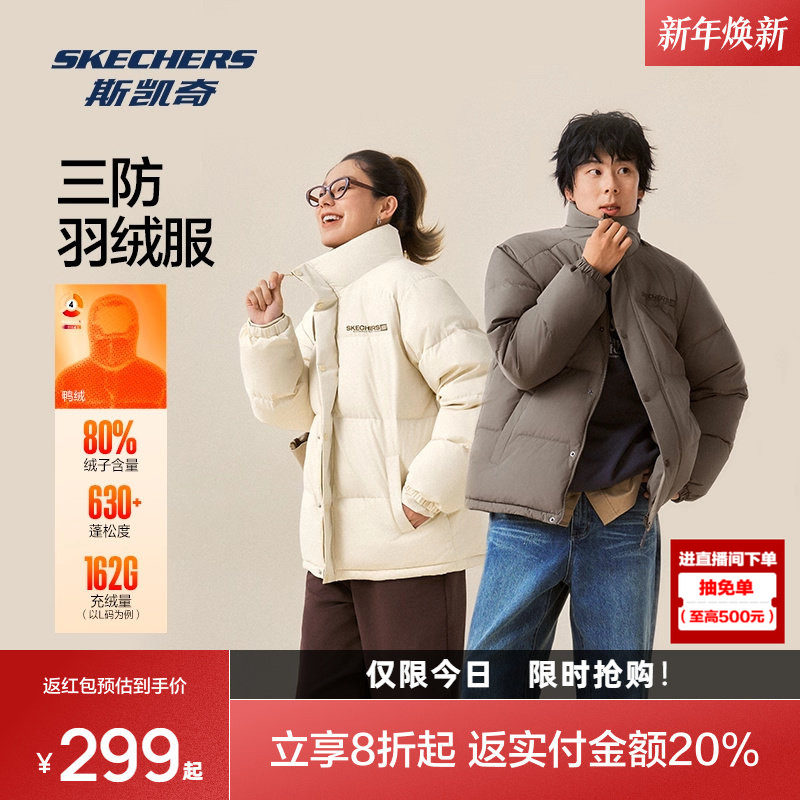 斯凯奇短款三防羽绒服2025年冬季男女棉服保暖防风拒水运动外套