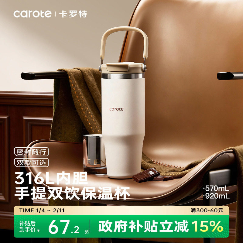 卡罗特手提保温杯大容量水杯女冰霸杯车载便携巨无霸吸管杯子男生