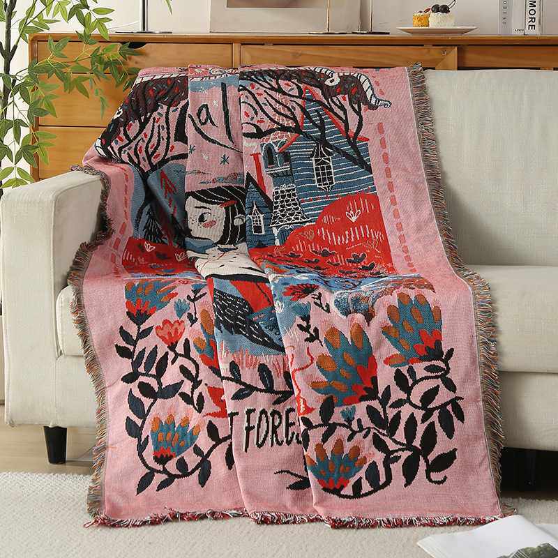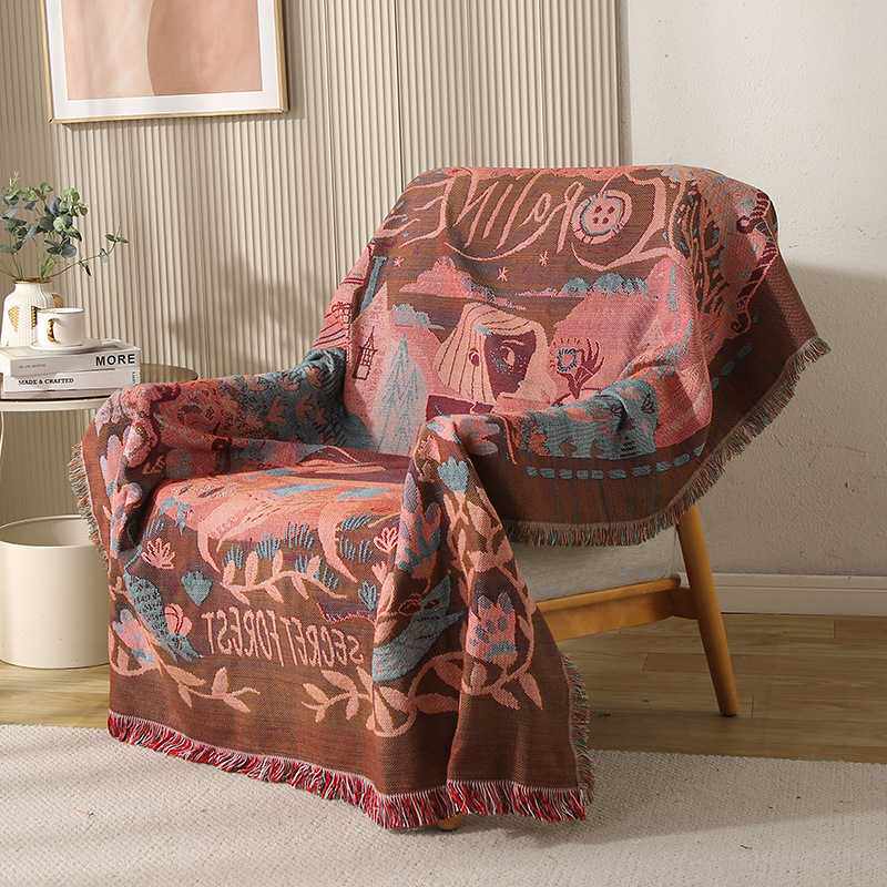 北欧线毯沙发巾盖巾盖毯四季通用沙发毯哥特风格插画挂毯一件代发