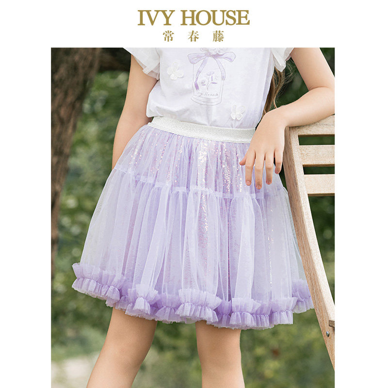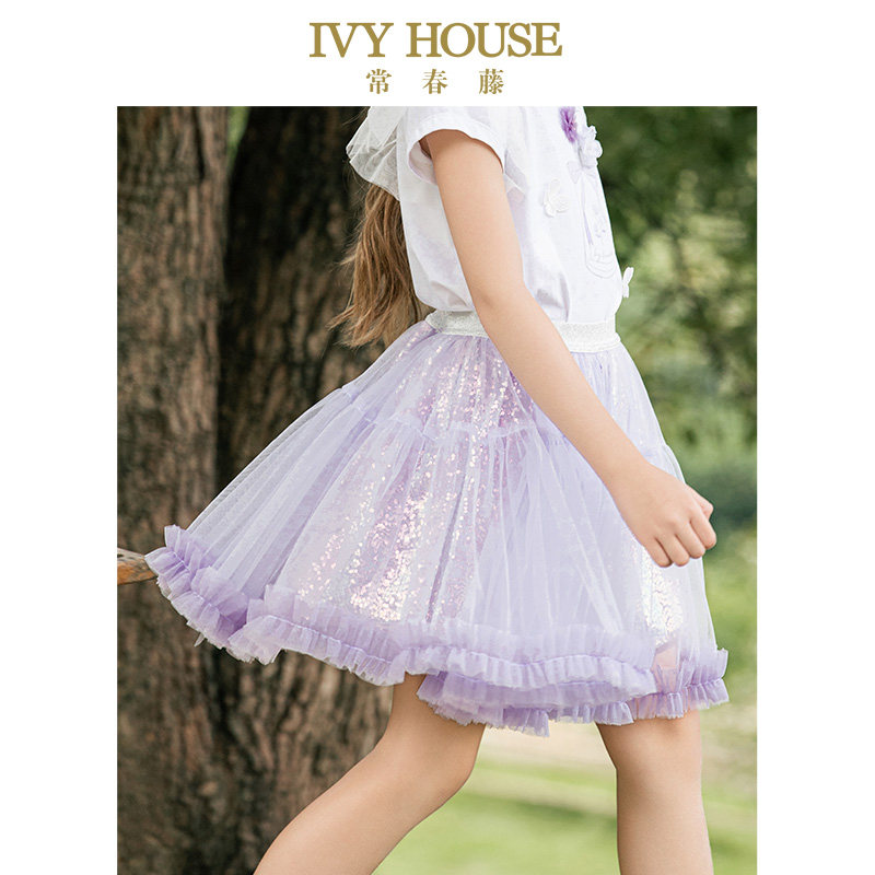 IVY HOUSE常春藤儿童装女童夏季新款 半身裙幻彩亮片网纱短裙裙子