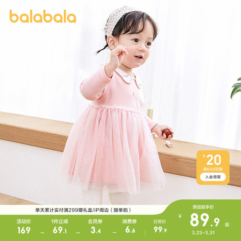 巴拉巴拉宝宝连衣裙蓬蓬网纱裙A字裙女童装秋季新款裙子儿童