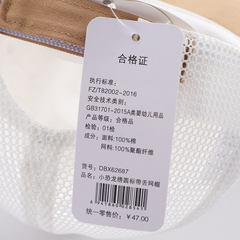 哆啦布丁夏季男女宝宝帽子可爱卡通恐龙鸭舌帽外出遮阳帽透气凉帽