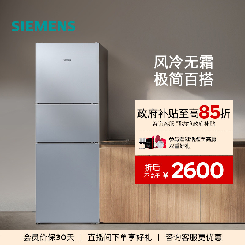 西门子271L三开门家用小户型租房电冰箱官方旗舰店风冷无霜290C