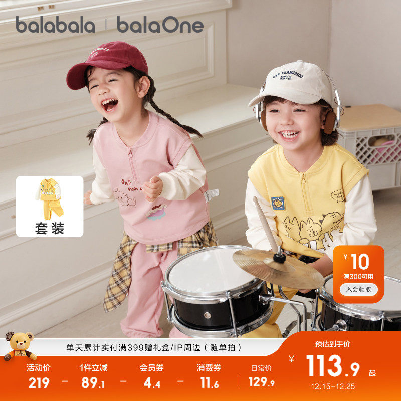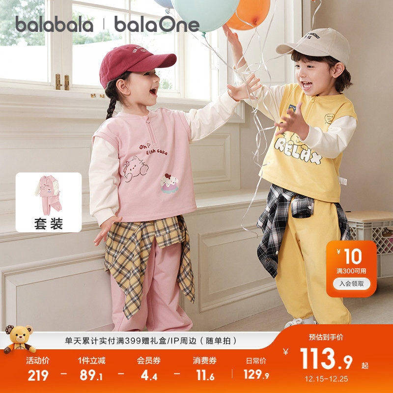 巴拉巴拉童装儿童长袖套装女童两件套男童宝宝衣服2025新款秋装潮