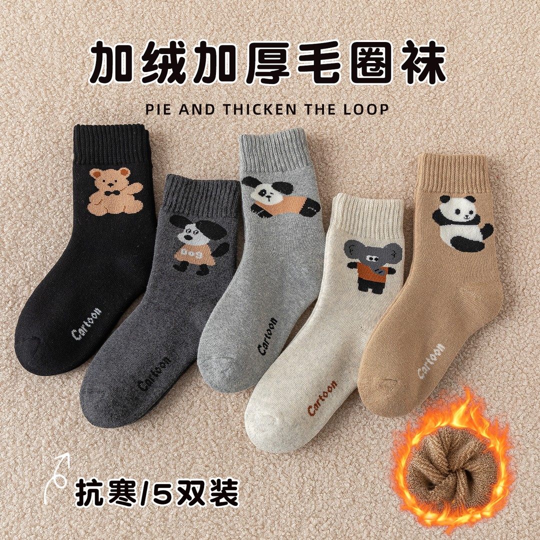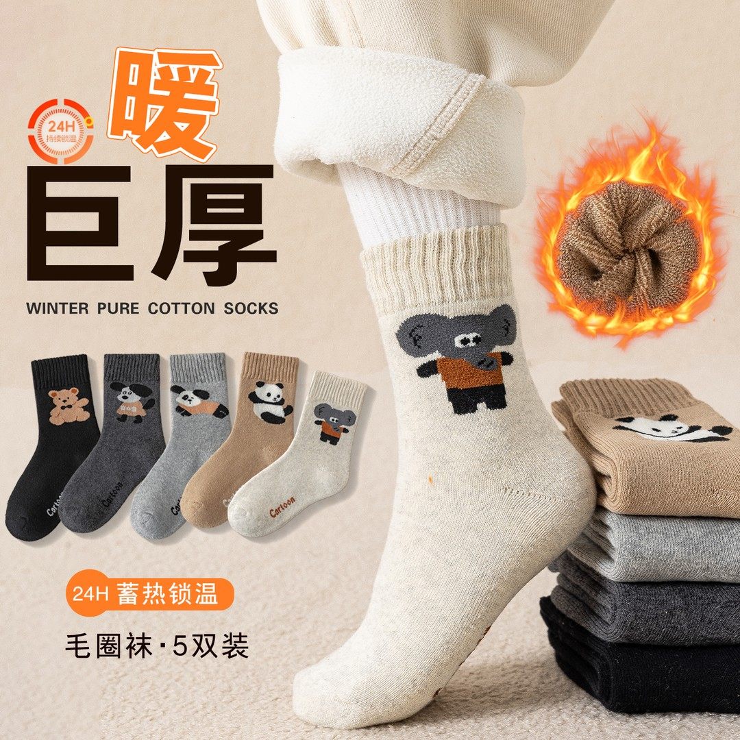 儿童袜子秋冬季男童女童加厚卡通可爱动物男宝学生袜中筒袜不勒腿