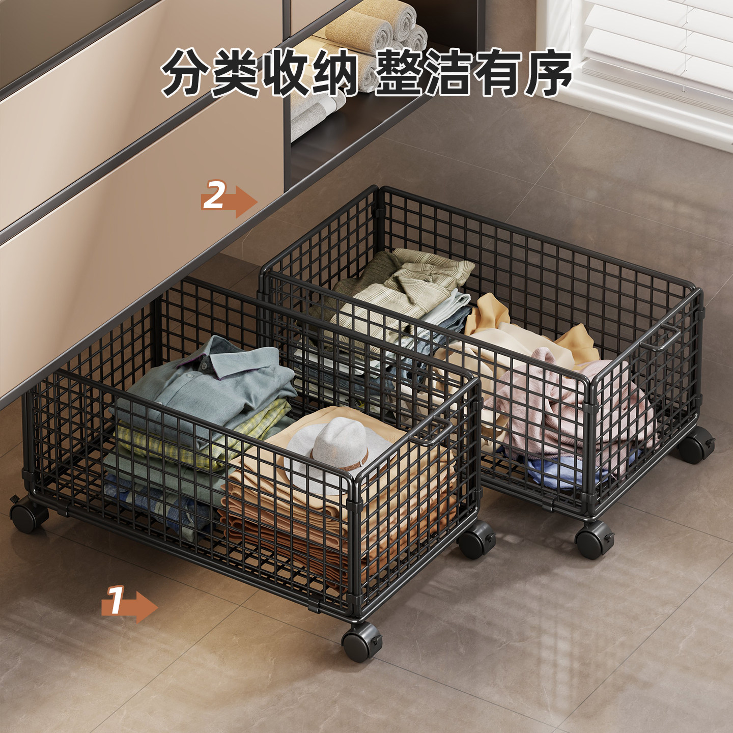 浴室柜下脏衣篓脏衣服收纳筐卧室衣柜下多功能可移动脏衣服收纳框
