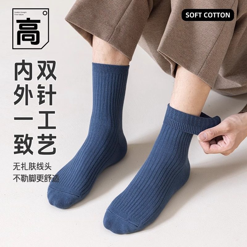 袜子男中筒袜秋冬款男士袜子纯色秋冬季吸汗排湿运动袜子男生长袜