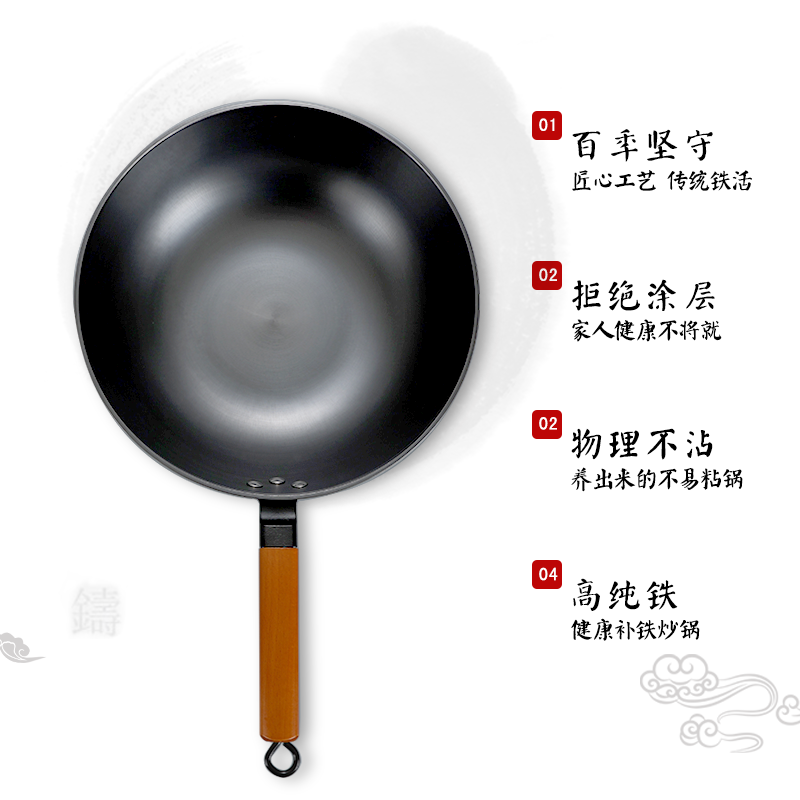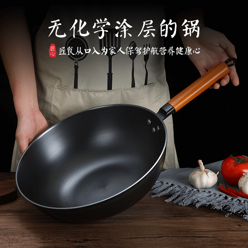 【经典款】中康精铁炒锅铁锅氮化防锈无涂层炒锅电磁炉燃气灶通用