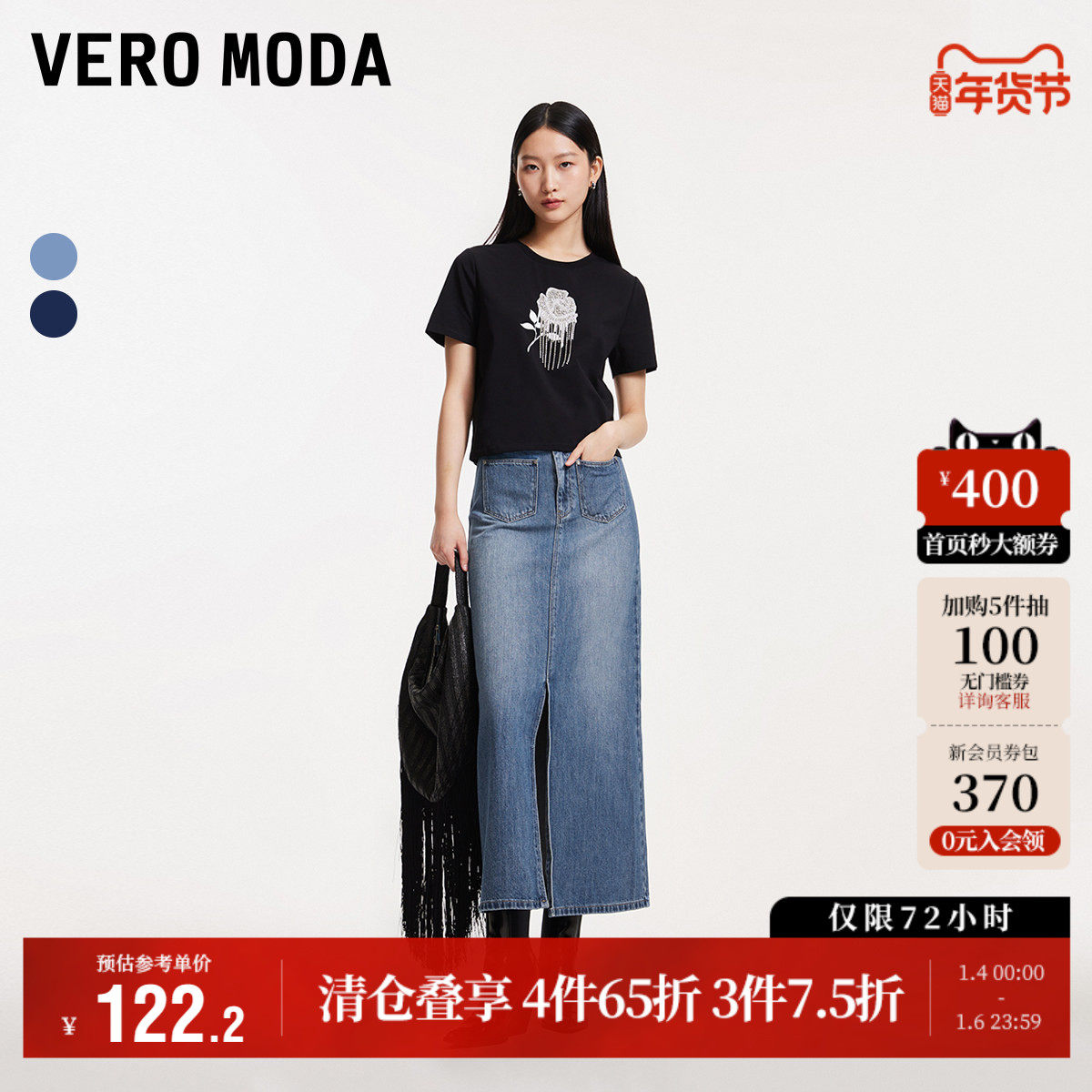 Vero Moda奥莱半身裙夏季新款纯棉休闲百搭中长款开叉牛仔裙流行