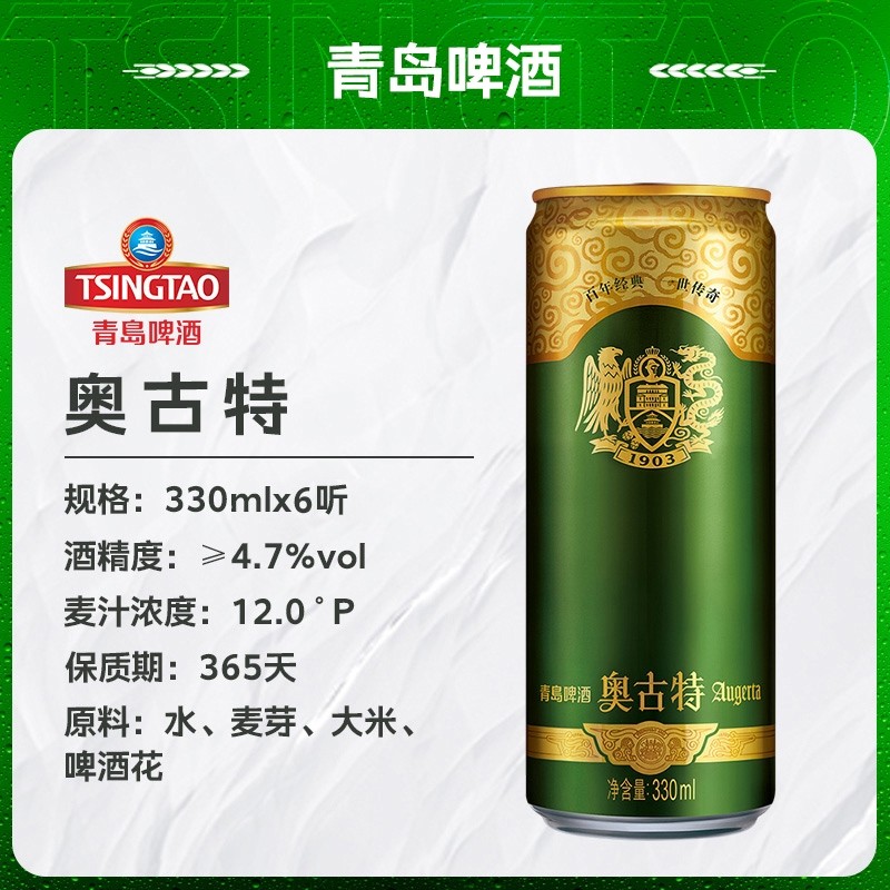 青岛啤酒旗下奥古特330ml*6罐啤