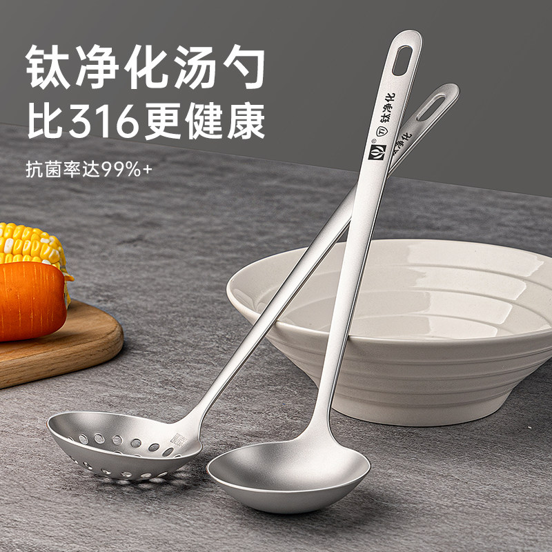 钛合金汤勺大号盛汤不锈钢长柄火锅漏勺食品级汤勺子家用高档精致