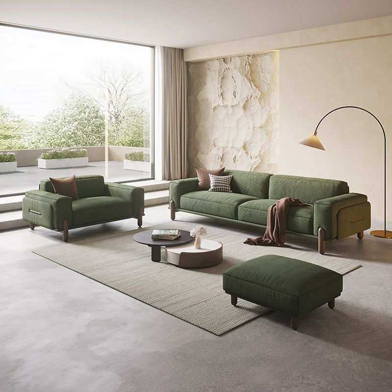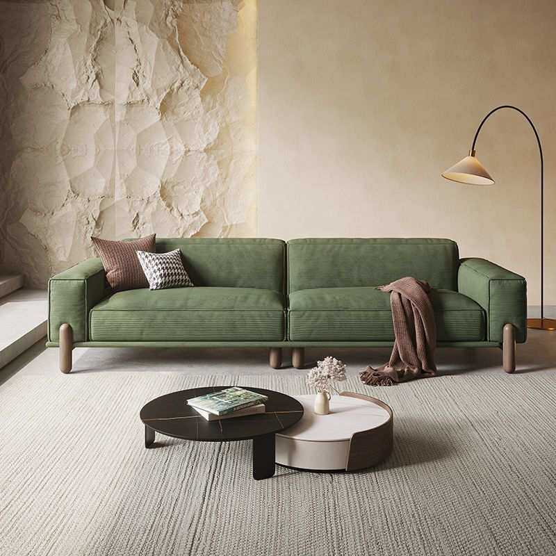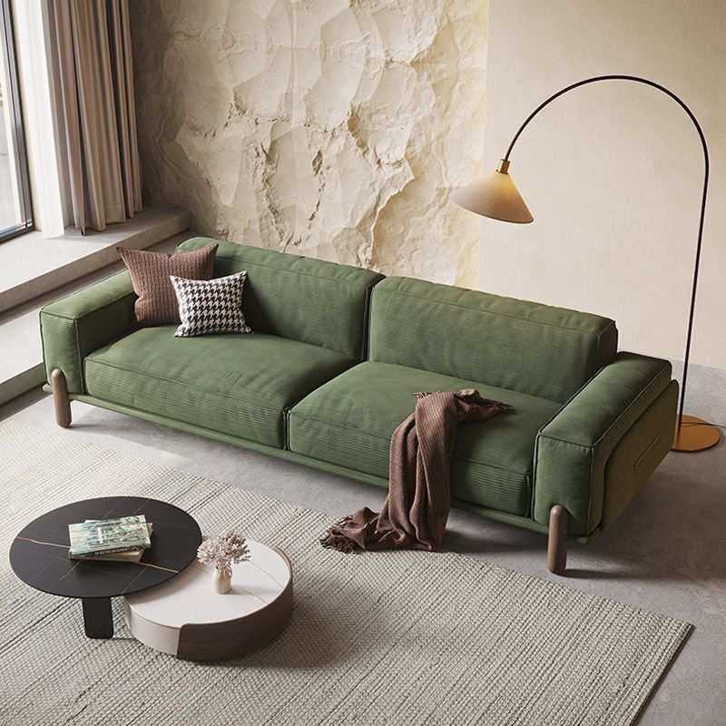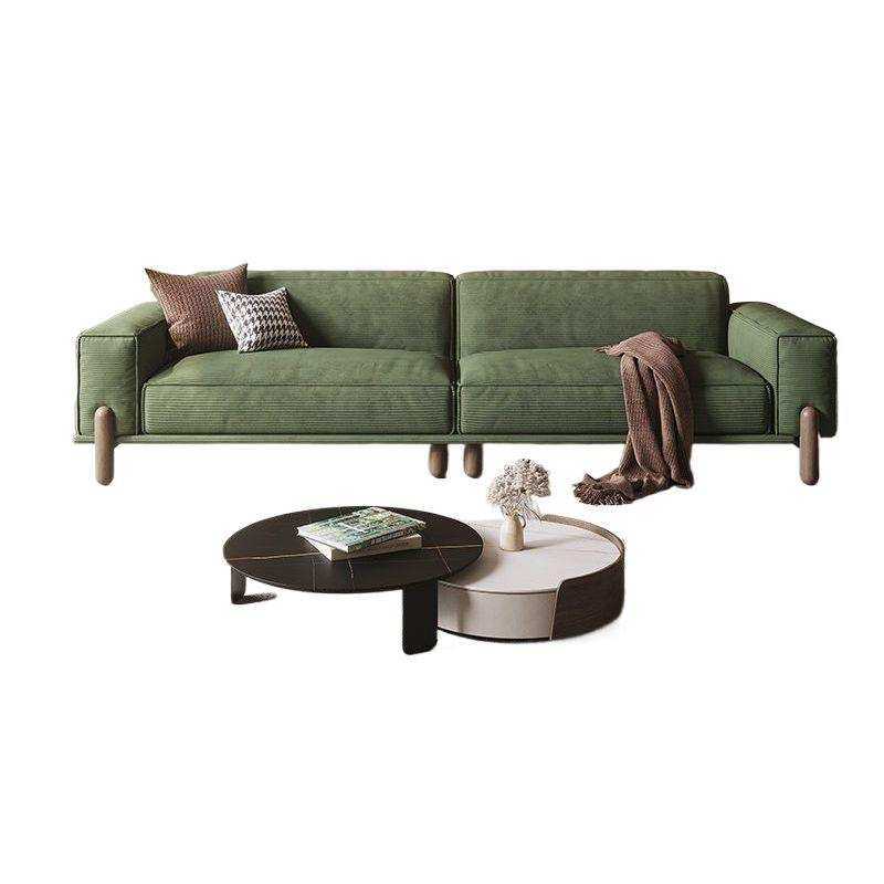复古网红绒布日式豆腐块直排三人位意式极简实木灯芯绒布艺沙发