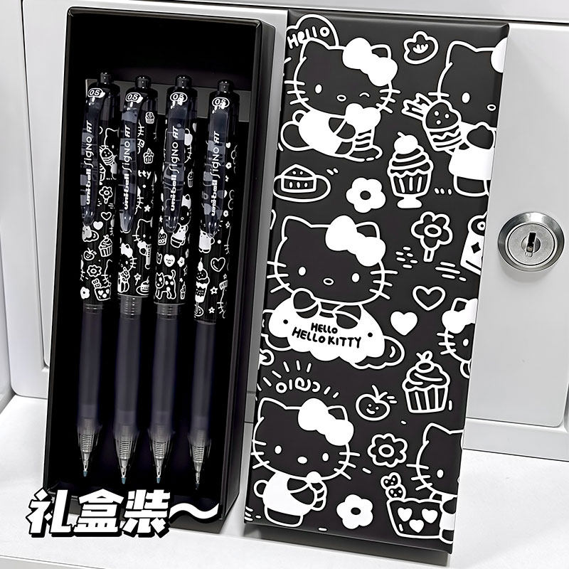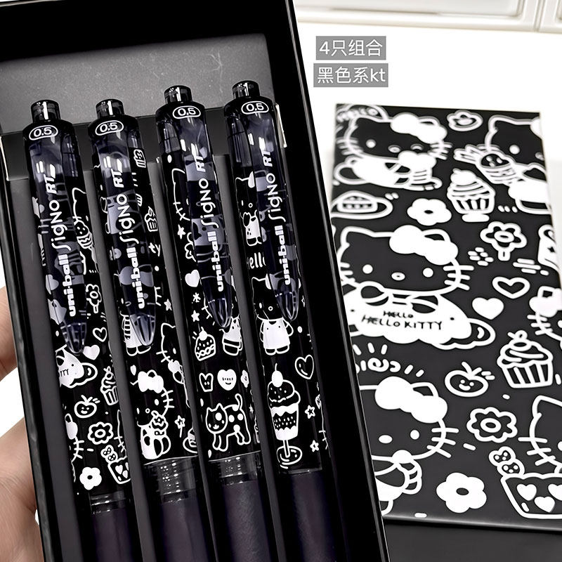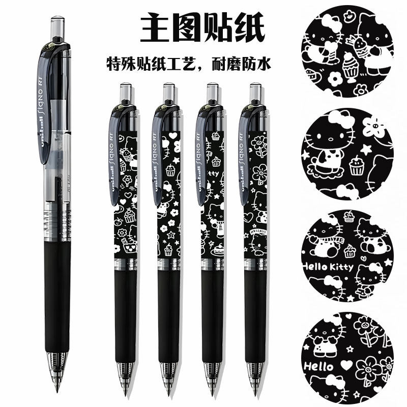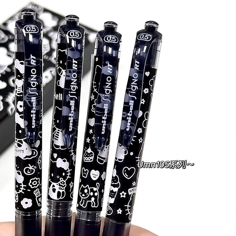 日本三菱中性笔uniball笔凯蒂猫签字笔盒装办公水笔0.5mm红蓝黑色学生用考试按动式笔芯文具水性笔UMN105笔芯