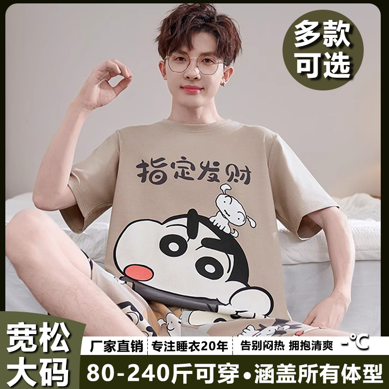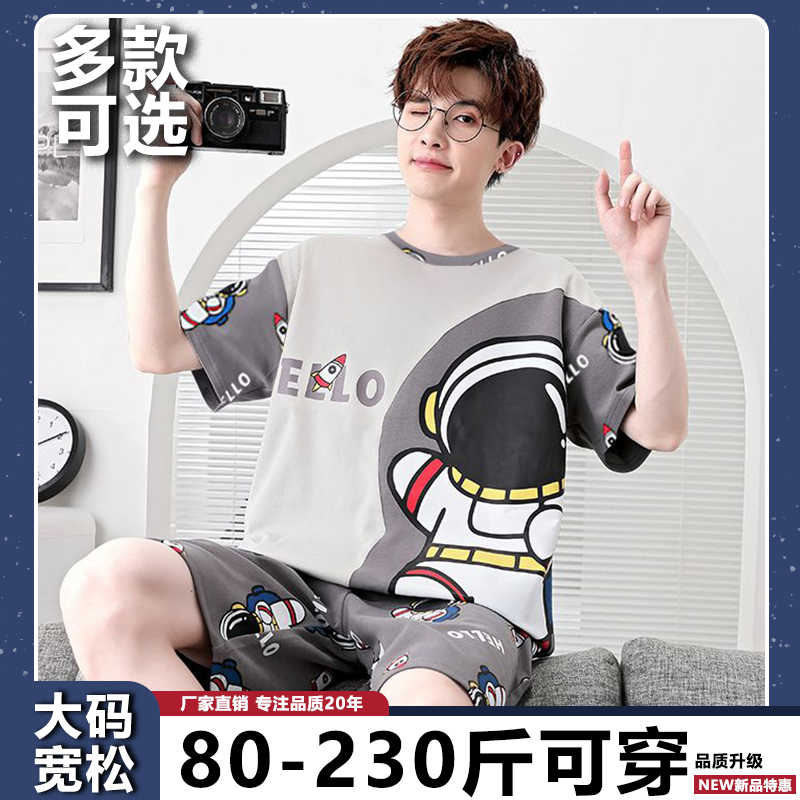 男士睡衣夏季2025新款短袖棉质套装薄款宽松大码家居服200斤青年