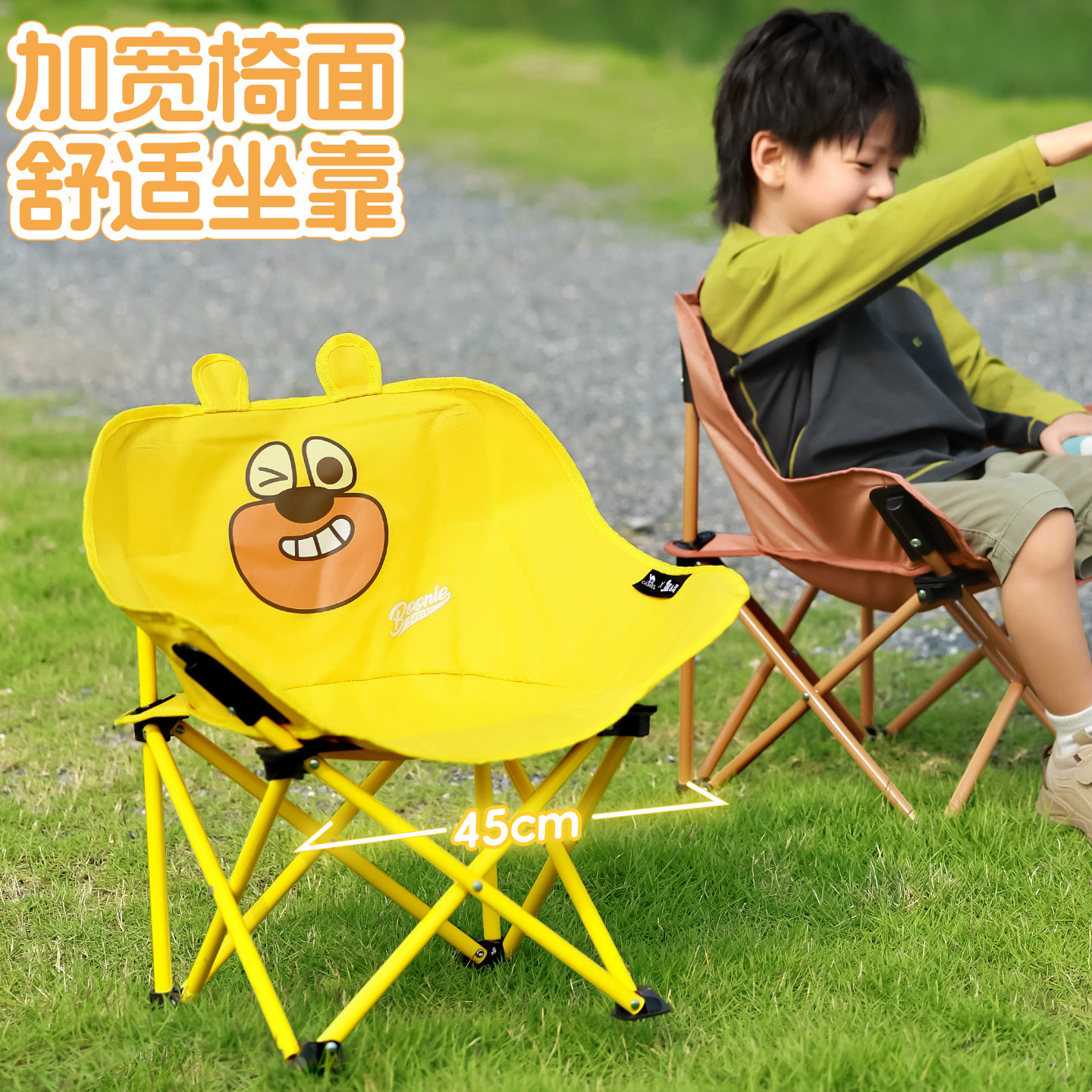 骆驼熊出没联名户外露营月亮椅折叠椅板凳钓鱼便携家用儿童椅子