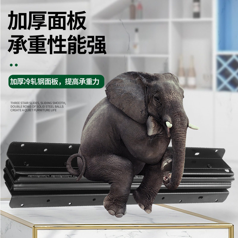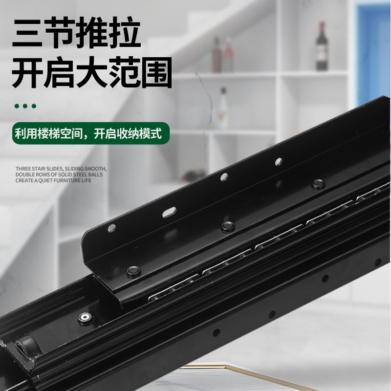 重型楼梯底柜滑轨托底伸缩鞋柜酒柜抽拉轨道加厚三节承重型轨五金