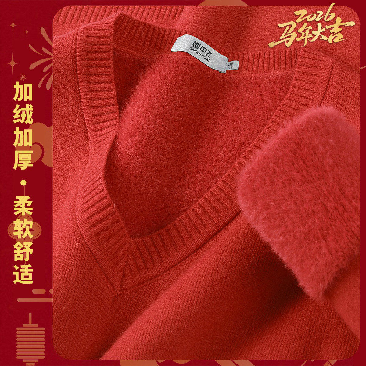雪中飞红色毛衣开衫女春装2026含绵羊毛新年拜年服本命马年衣服PC