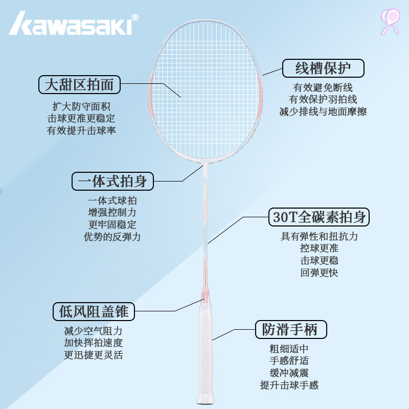 Kawasaki川崎限定巧克力羽毛球拍极光官方正品超轻全碳素男女单拍