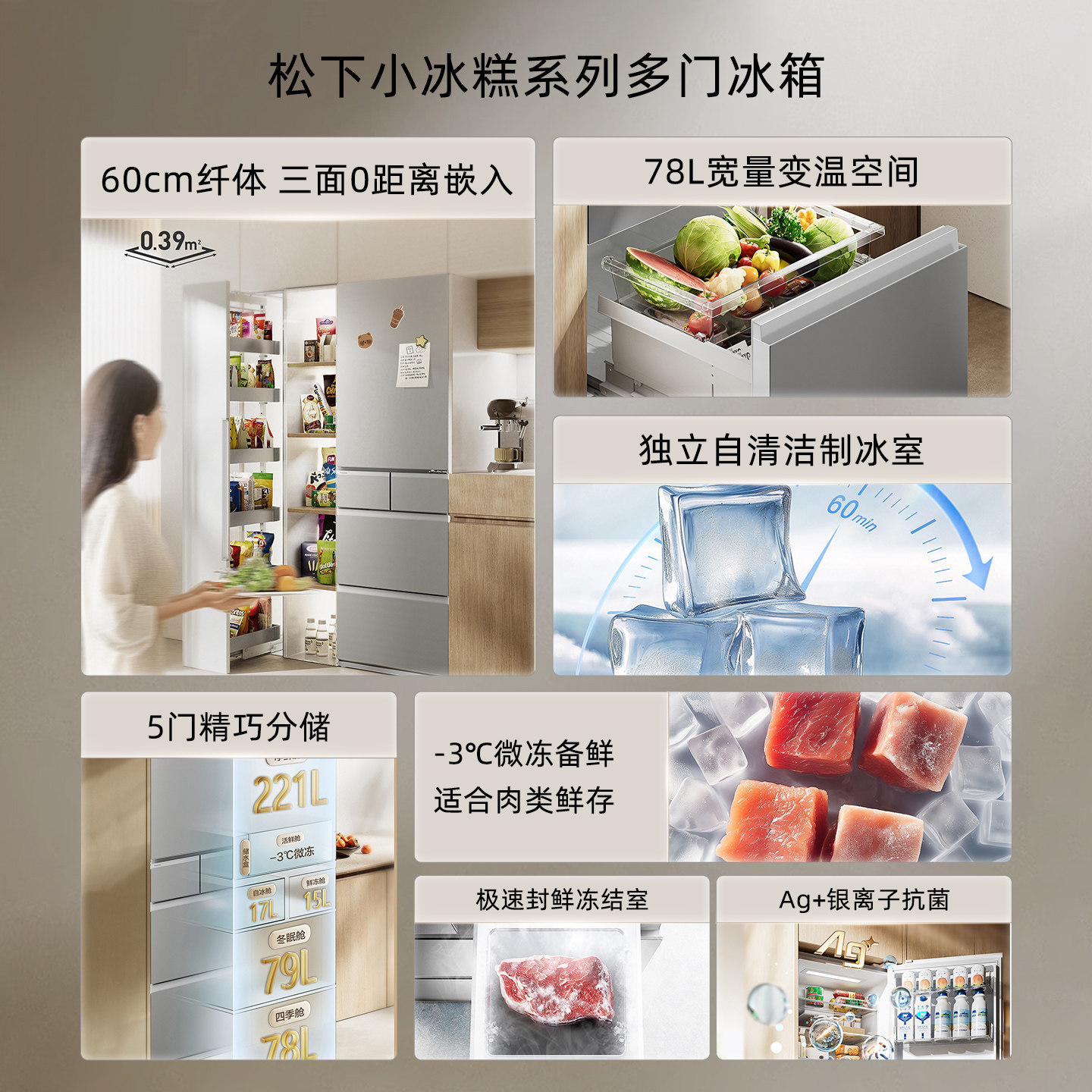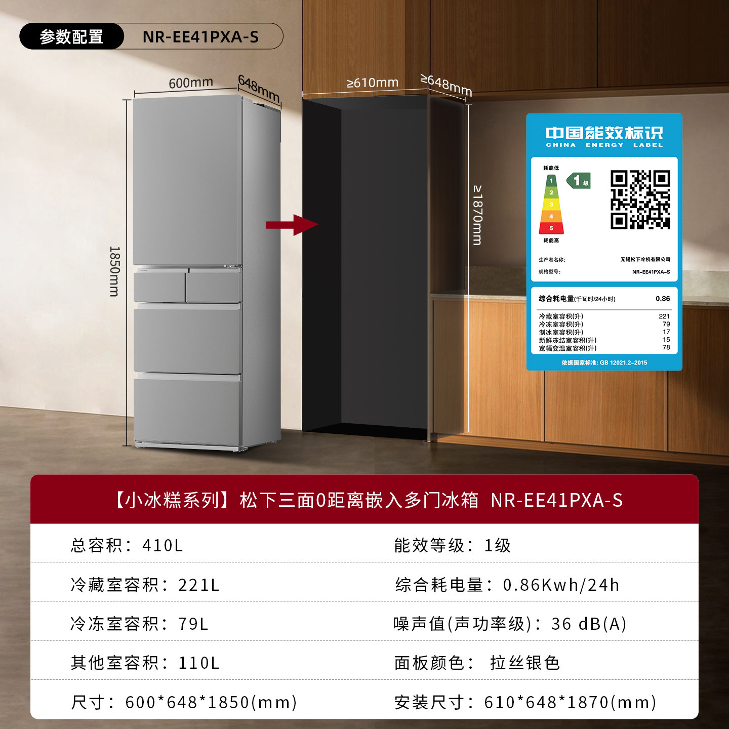 【零嵌新品】松下小冰糕410L法式多门冰箱自动制冰一级银 EE41PXA