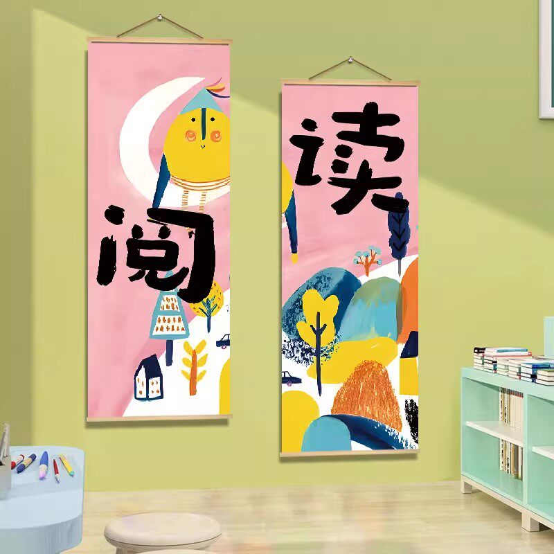 读书室绘本馆墙面装饰挂画图书角海报幼儿园阅读教室氛围布置壁画