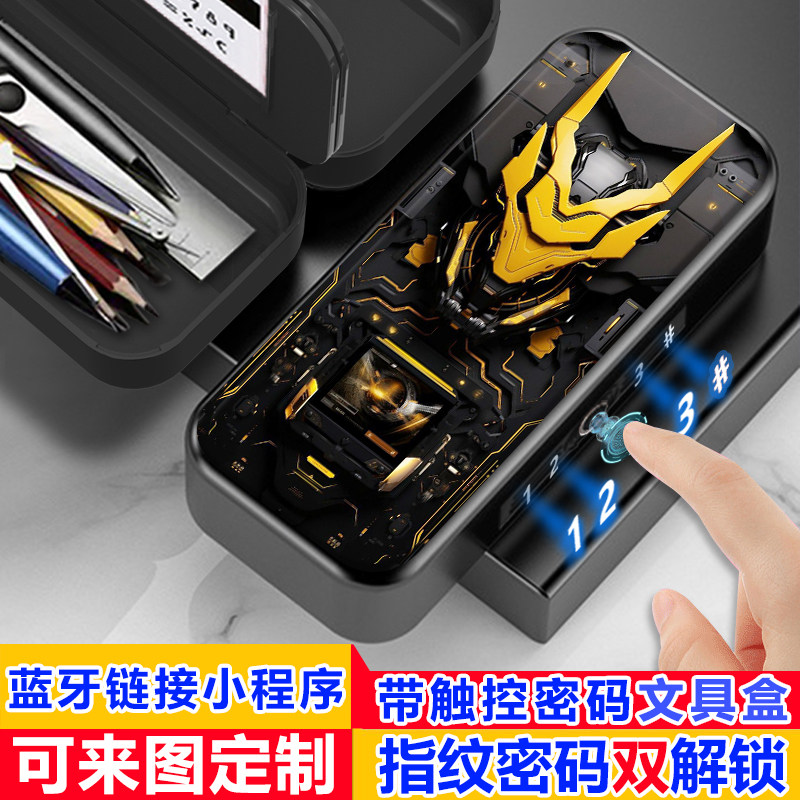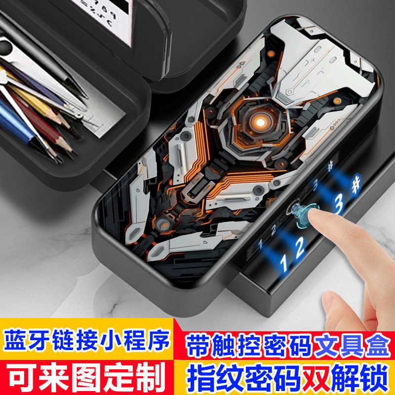 新款机械科技未来感指纹密码双解锁文具盒小学生男生铅笔盒可定制