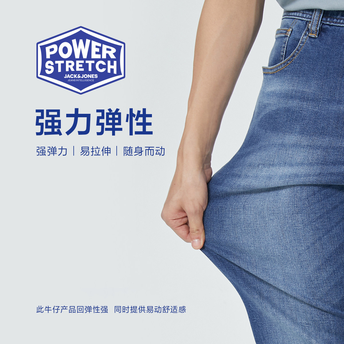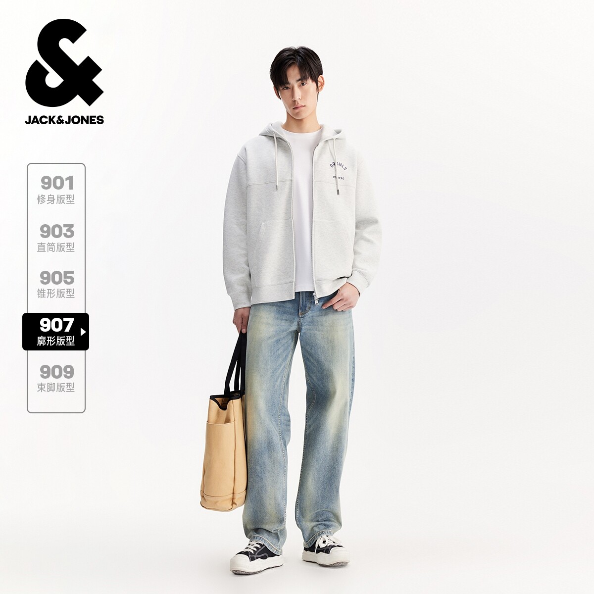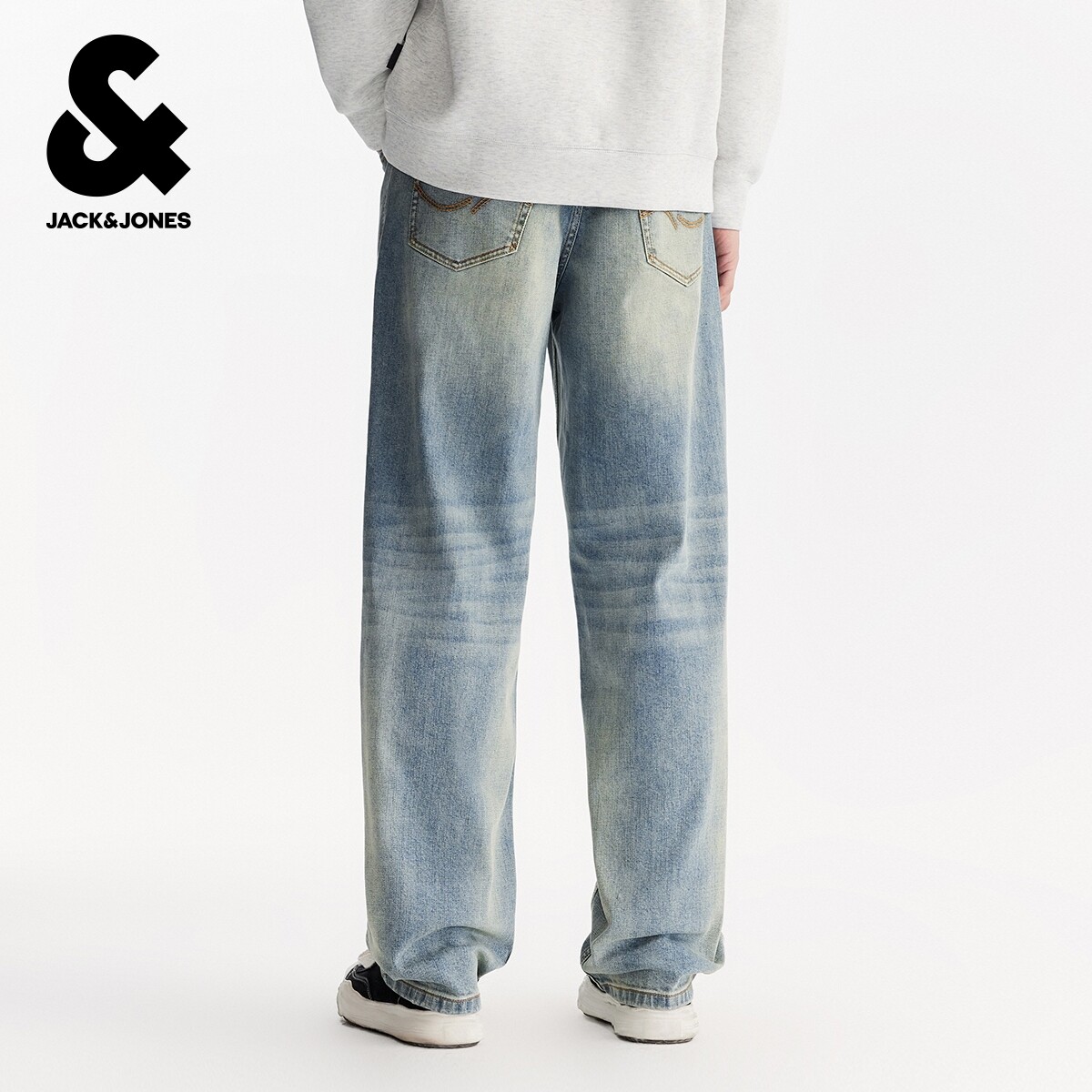 杰克琼斯男装春季新款廓形剪裁舒适微弹水洗阔腿裤牛仔裤长裤子