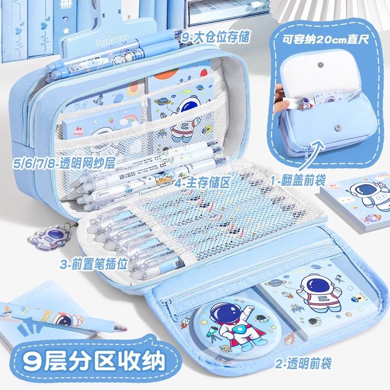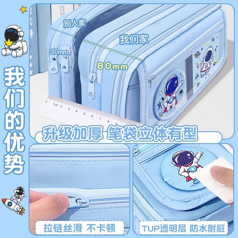 宇航员超大容量笔袋文具盒男孩子2025新款小学生多功能透明铅笔盒蓝色儿童男孩款高颜值ins风文具袋初中男生