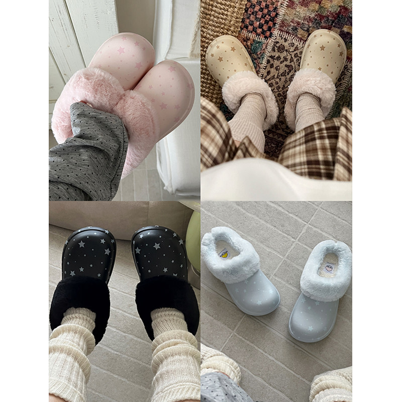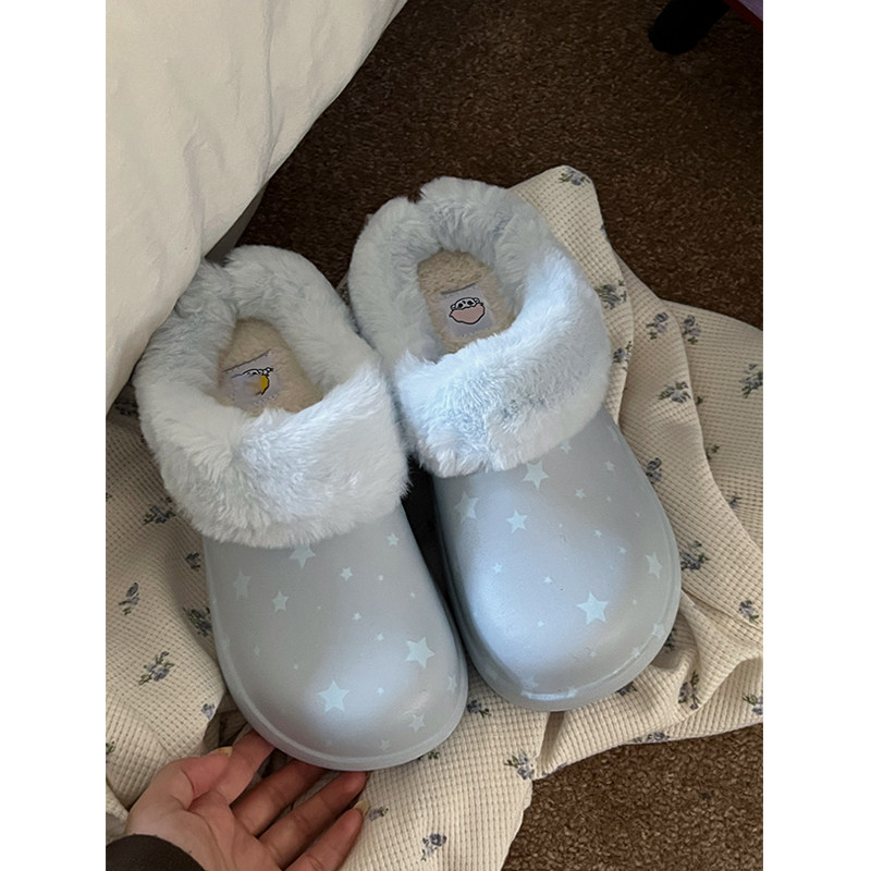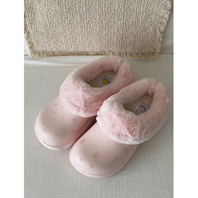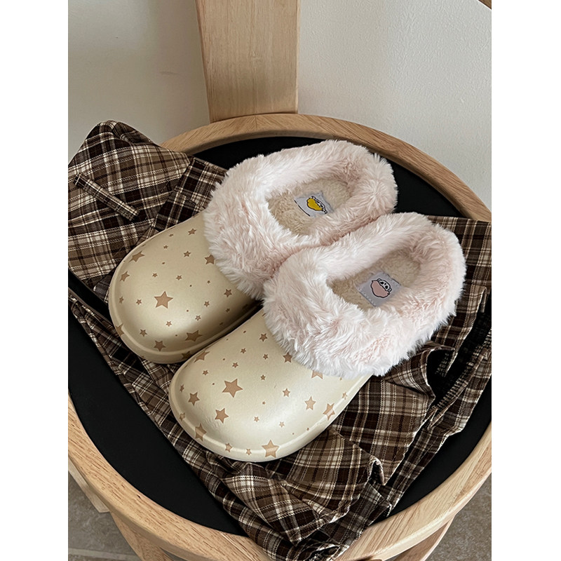 甜桃星球星星加绒棉拖鞋女款2025新款冬季外穿厚底厨师鞋毛毛拖鞋