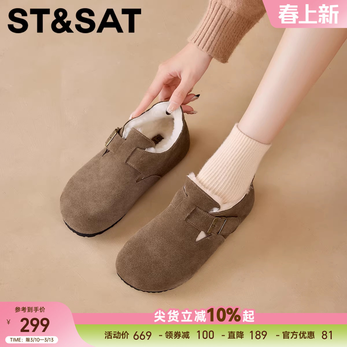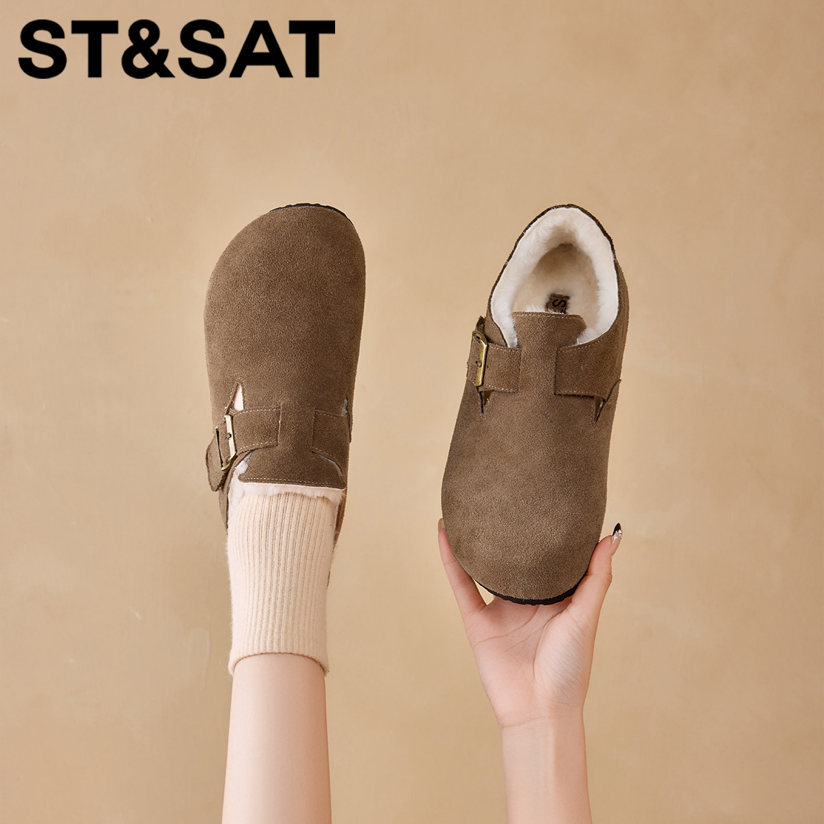 星期六保暖舒适真皮羊毛勃肯鞋2025年冬季新款加绒时尚毛毛鞋女鞋