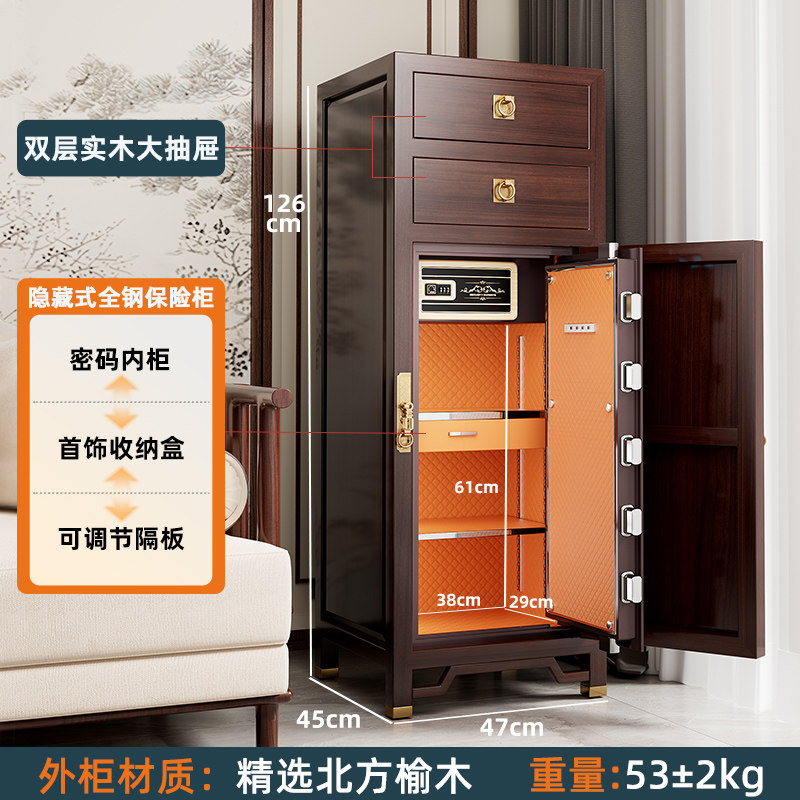 【整装直发 送货入户】虎牌智能防盗保险柜家用新中式榆木外柜大空间双层实木大抽屉指纹人脸wifi远程保管箱