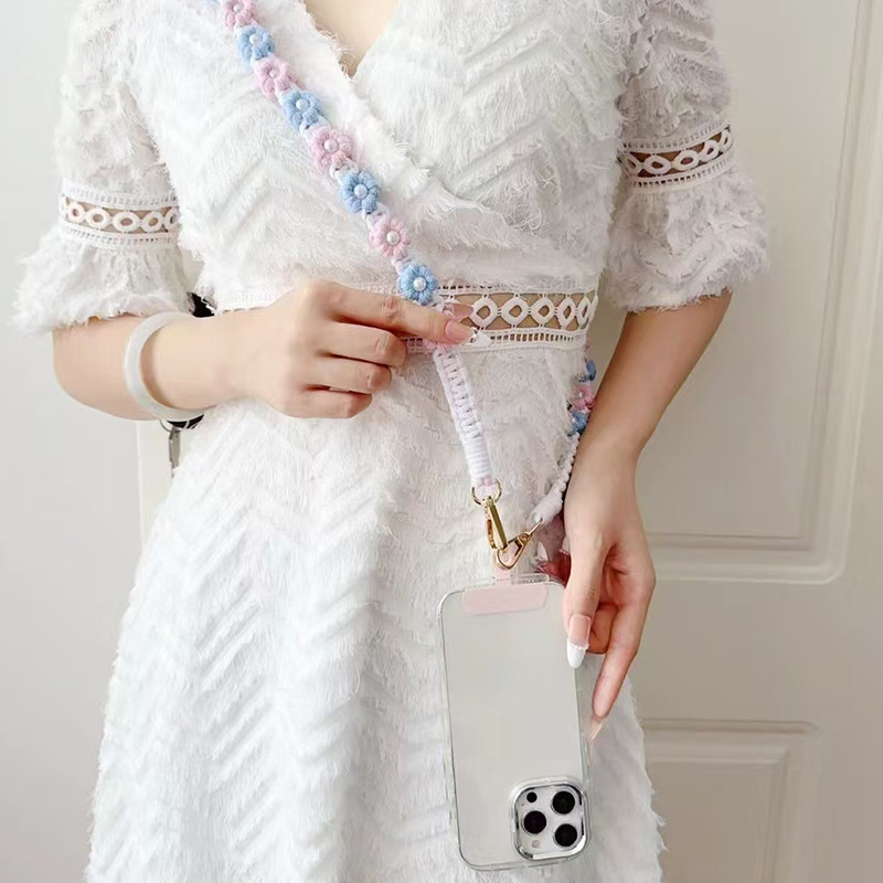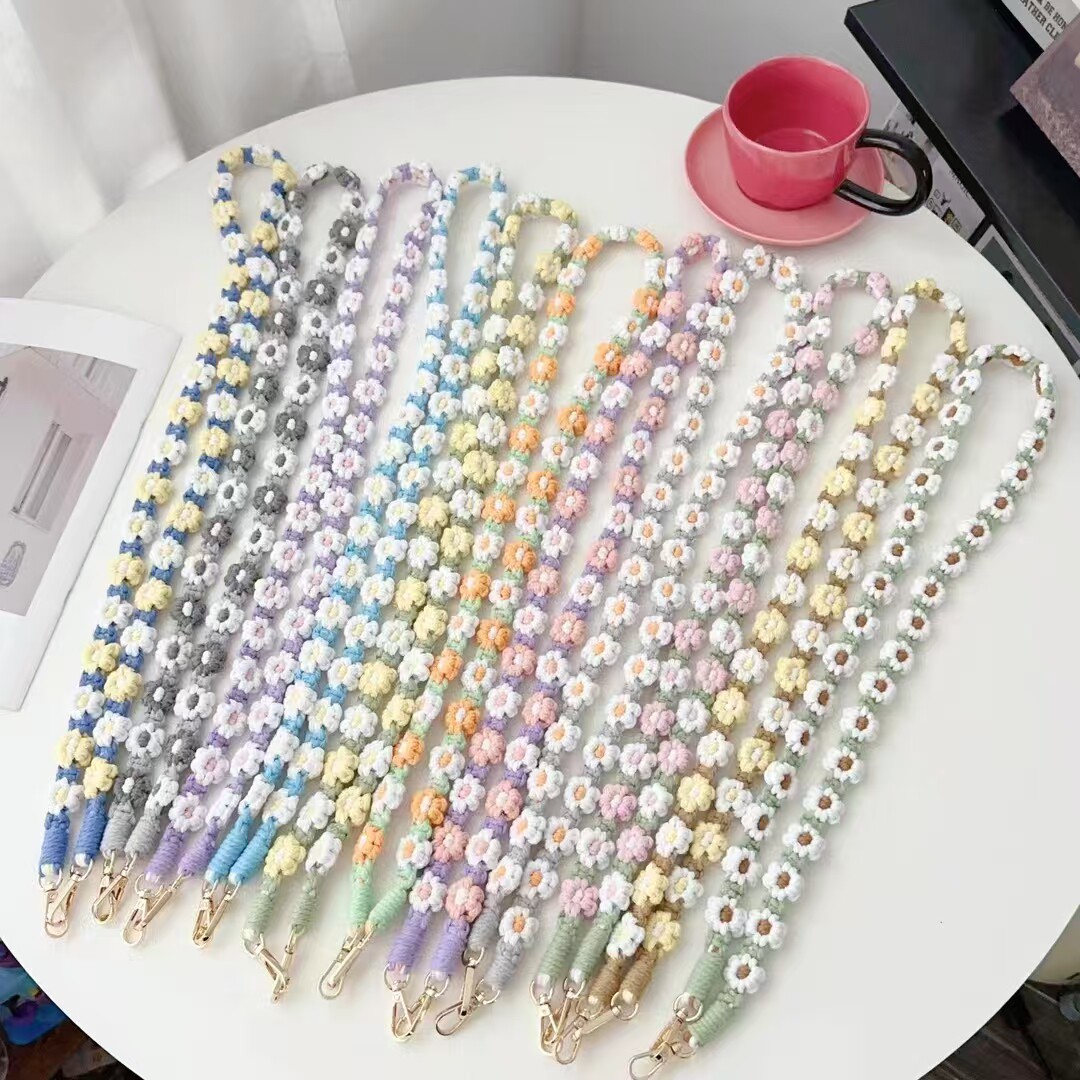 波西米亚编织雏菊花朵包包斜挎防丢手腕工牌脖挂绳手机挂绳背带女