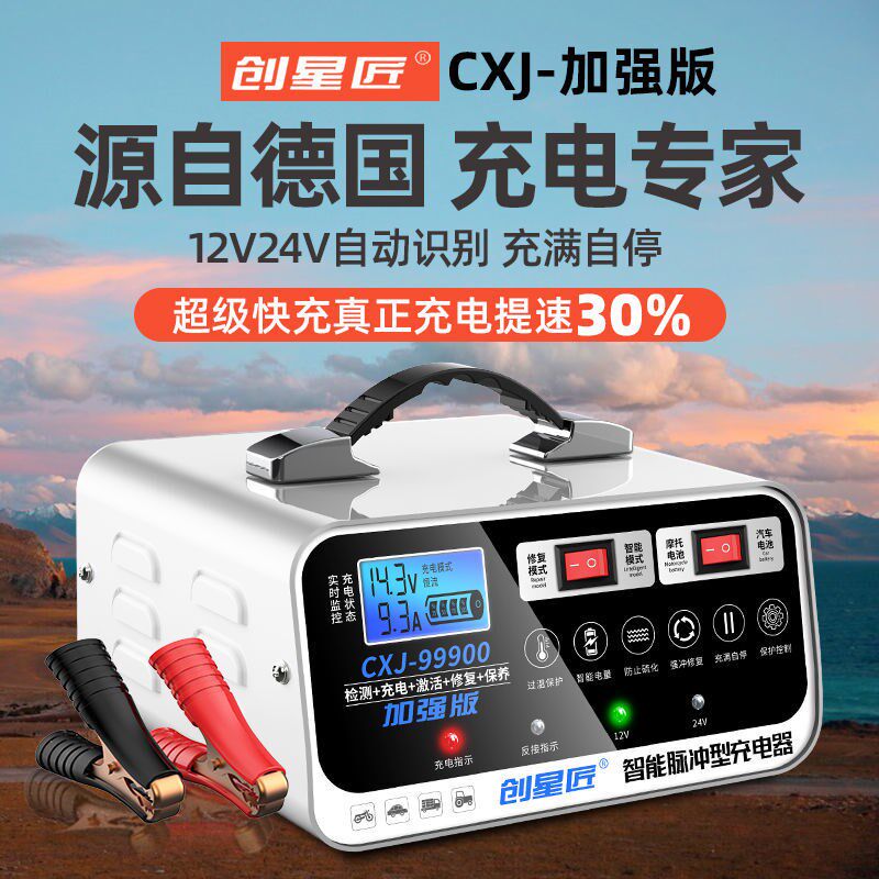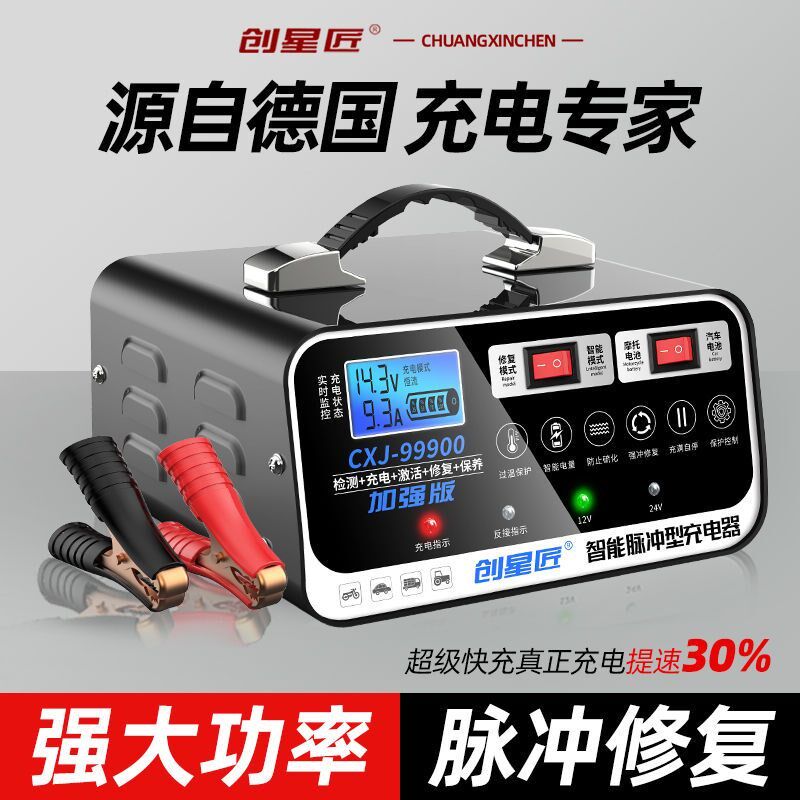 汽车电瓶充电器通用型12v24v全智能脉冲自动修复纯铜摩托车充电机