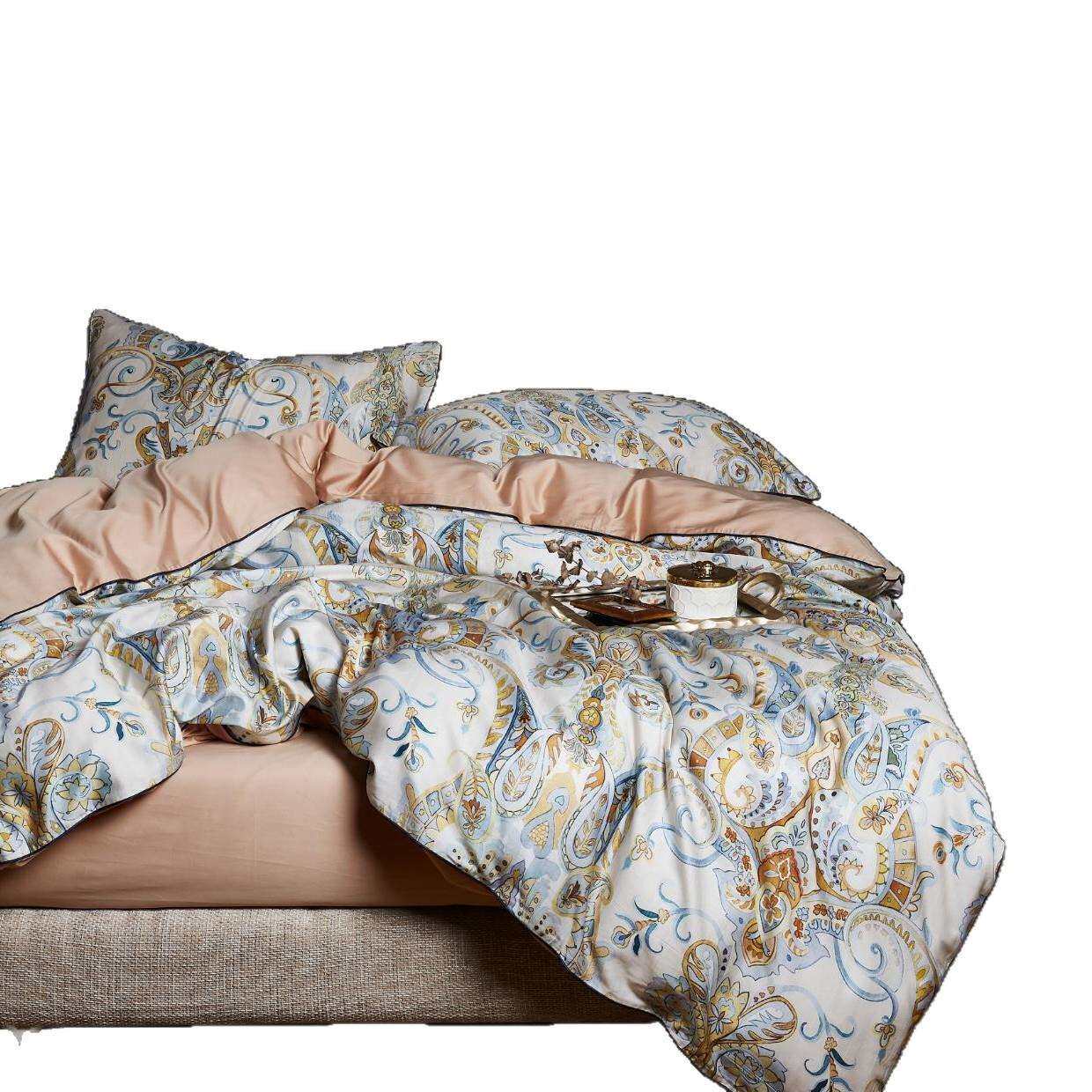 轻奢美式60支长绒纯棉花四件套全棉贡缎被套1.8m床单床笠床上用品