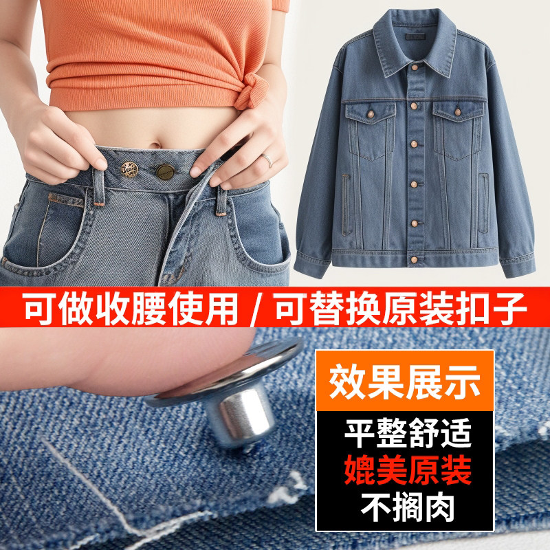 牛仔裤扣子免打孔腰围大改小固定神器免缝免钉可调节收腰纽扣配件