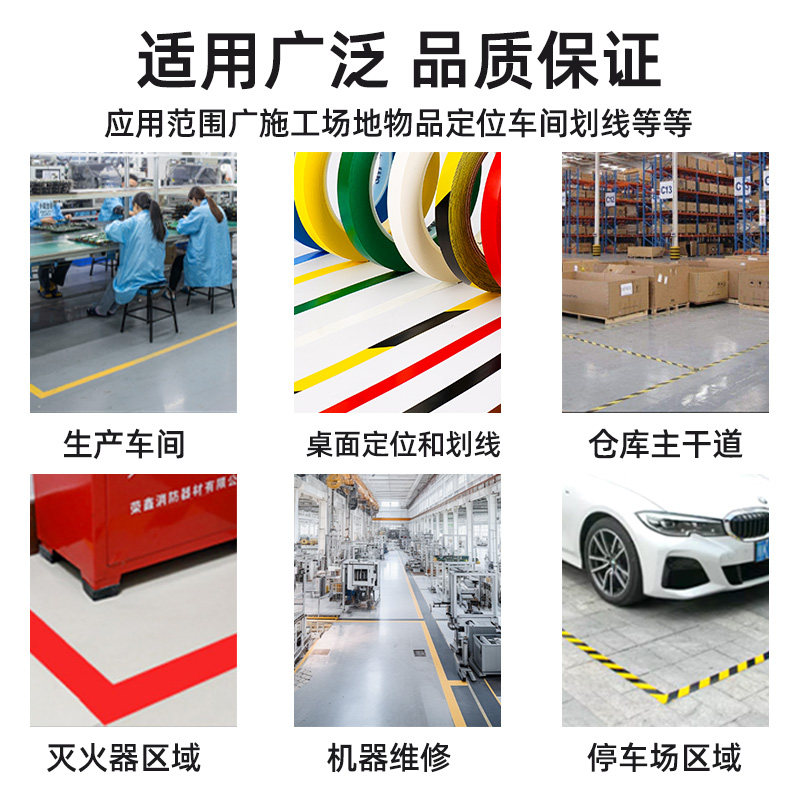 PVC黄色胶带高耐磨警示地胶带强力加厚防水胶带警示胶带装修施工车位贴纸划线地标线消防通道线无尘车间标识