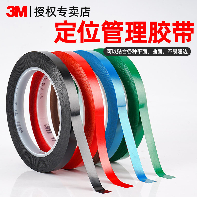 3m彩色5S桌面定位标识471警示胶带耐磨标记定置线白板表格划线警示贴红黄蓝绿黑线条6S物品4d厨房管理胶带