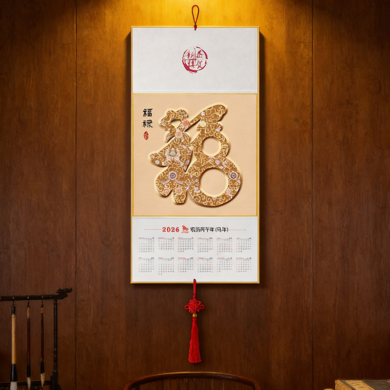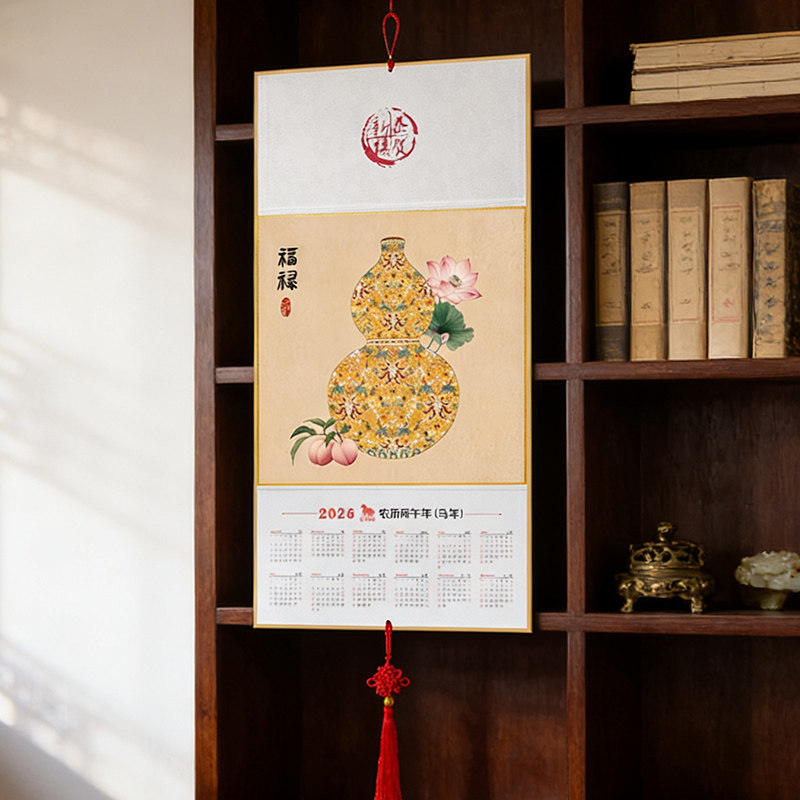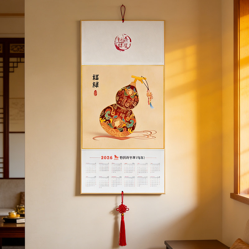 2026年福字葫芦挂历新中式传统装饰挂历定制马年家用日历年历吉祥装饰画中国风新年玄关过道墙画客厅餐厅挂画
