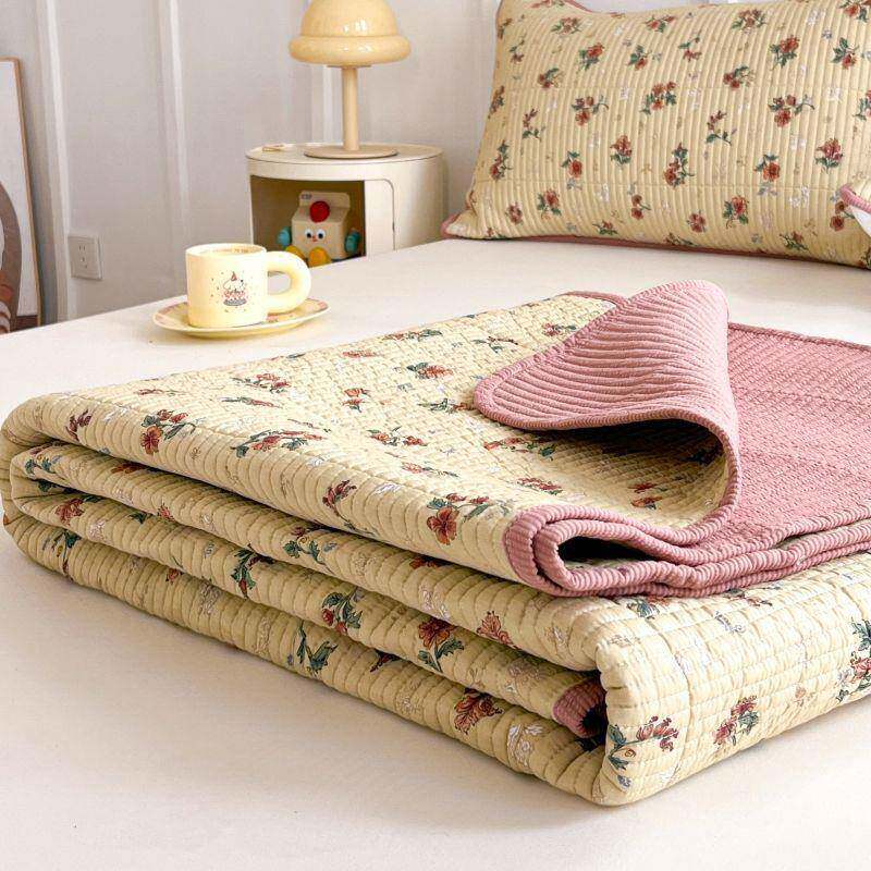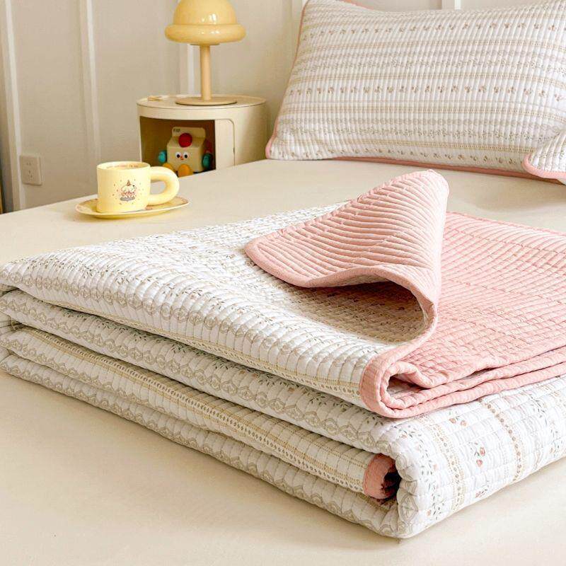 双面可用全棉床盖三件套家用夹棉床单单件榻榻米床护垫炕单罩