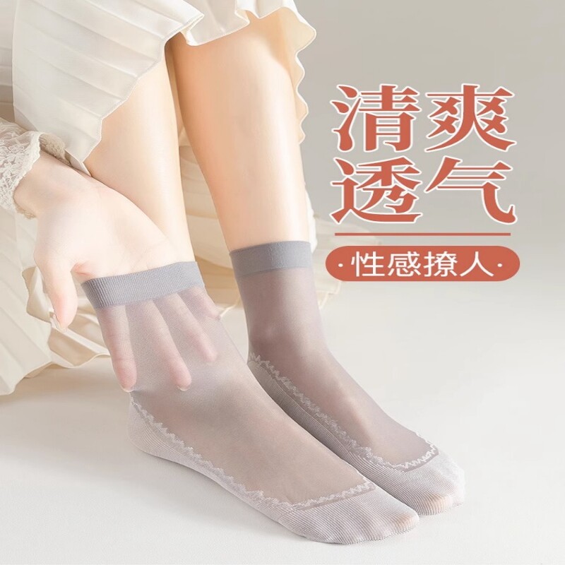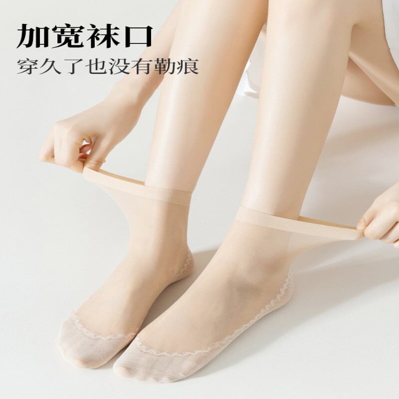 丝袜女短袜春秋夏季薄款水晶防勾丝透气加厚袜底中筒女士隐形防滑