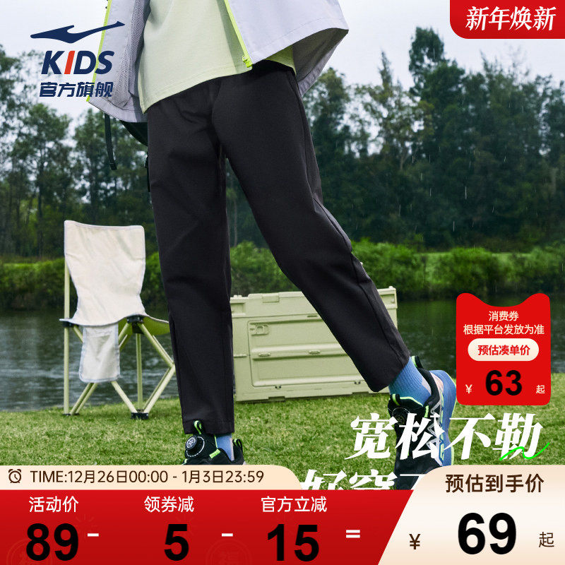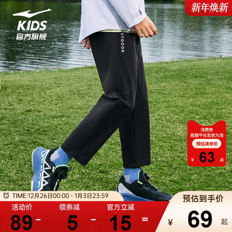 鸿星尔克童装男童裤子儿童速干卫裤防泼水中大童秋季直筒运动长裤