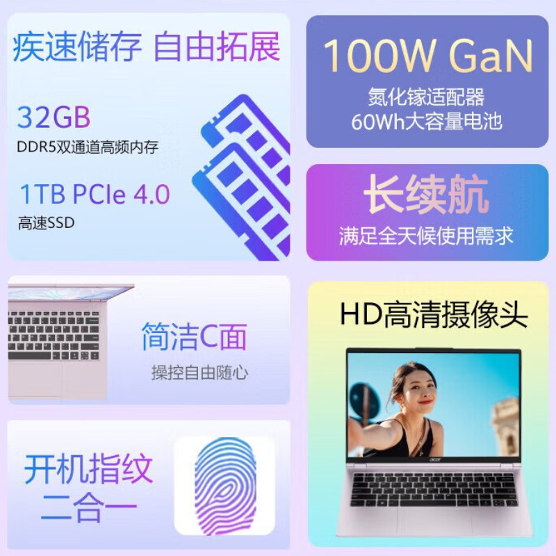 Acer/宏碁 非凡GoPro 英特尔13代酷睿i5 12线程 14英寸2.8K高清轻薄便携笔记本电脑商务办公超薄本学生电脑