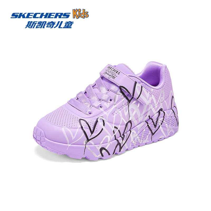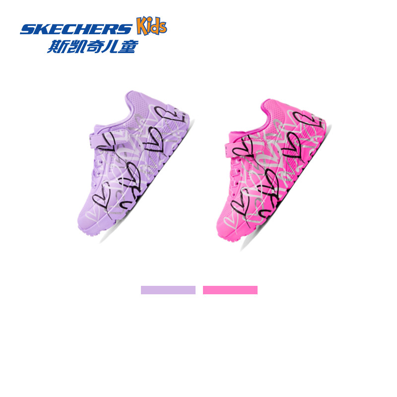 Skechers斯凯奇儿童UNO系列休闲板鞋春夏女童涂鸦爱心舒适运动鞋