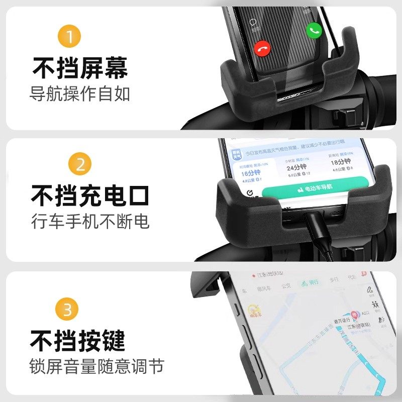 电动车手机支架外卖骑手导航车载电瓶摩托车防抖减震三爪固定新品